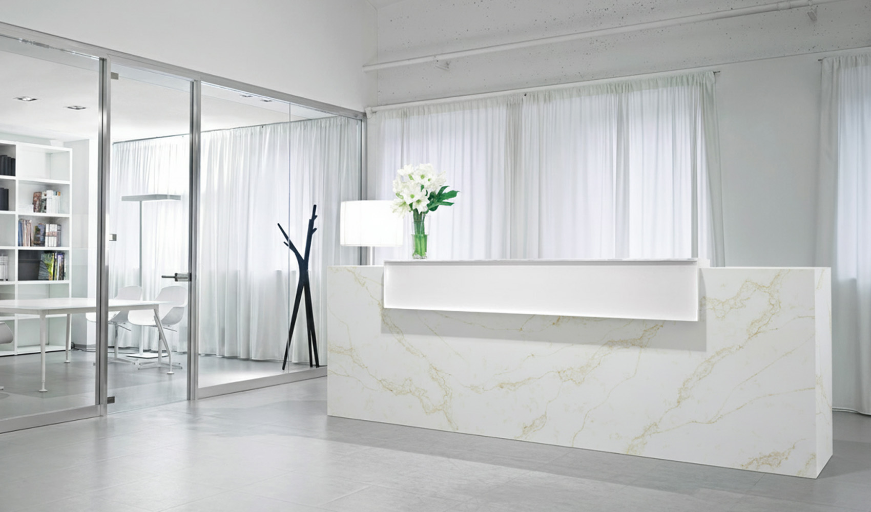 Кварцевый агломерат Canvas Reef широко используется для кухонных столешниц, фартуков, островов, барных стоек и обеденных столов. Превосходные эксплуатационные свойства кварцевого агломерата также делают его популярным материалом для оформления ванных комнат, создания подоконников и стоек ресепшен.
